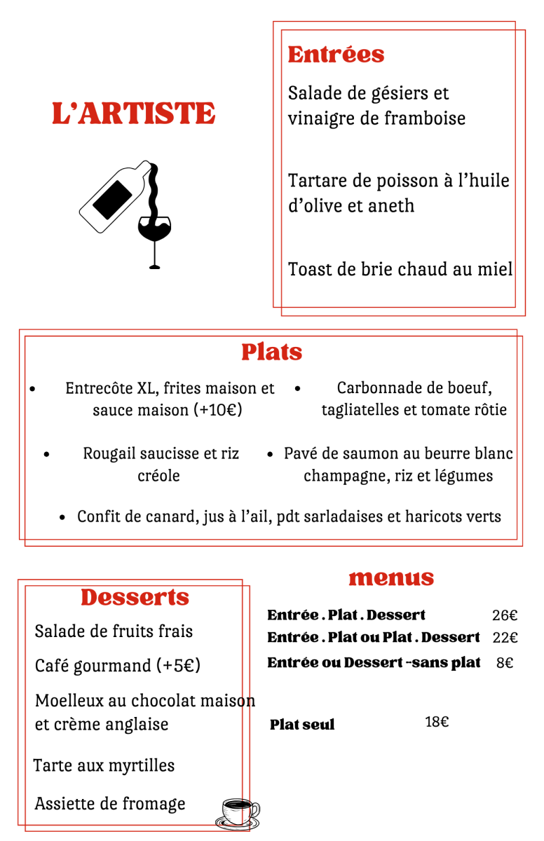 Votre restaurant L'ARTISTE vous accueille exceptionnellement le samedi 14 février, midi et soir !
