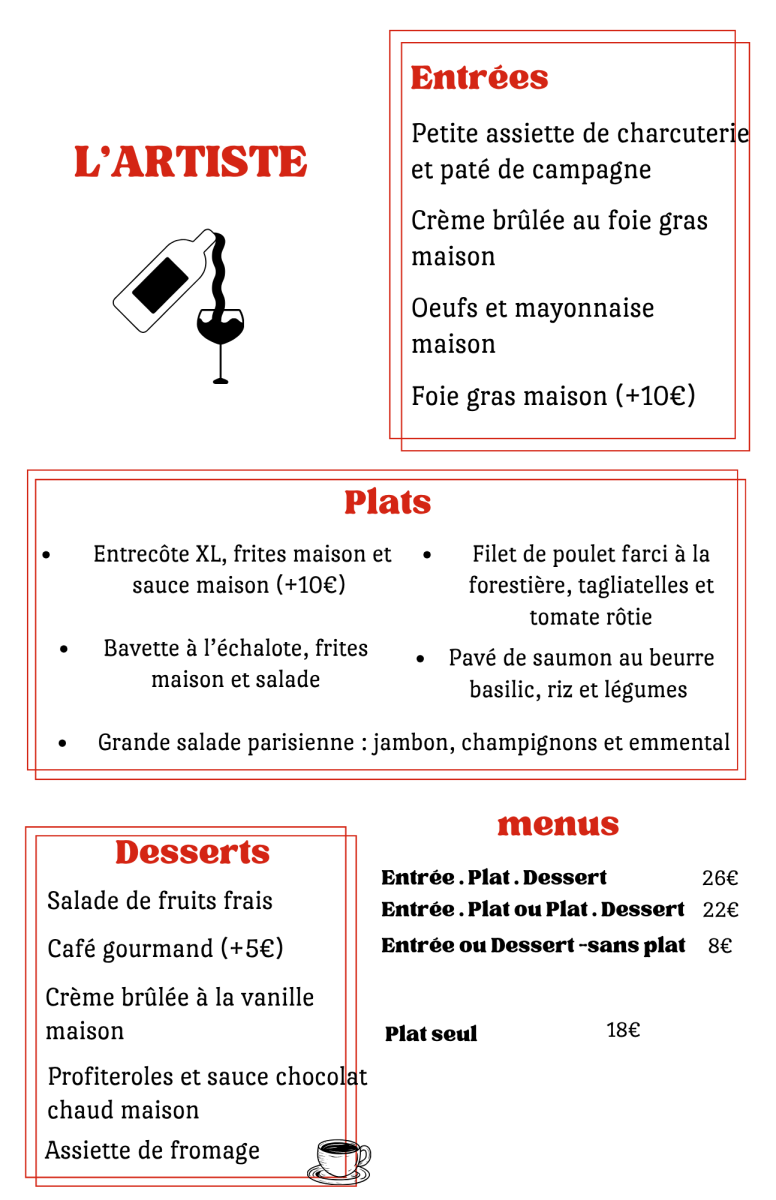 Ci-joint le menu de ce Mardi 21 Avril. Au menu du jour, petite assiette de charcuterie, bavette à l'échalote et grande salade parisienne. En dessert, crème brûlée vanille !